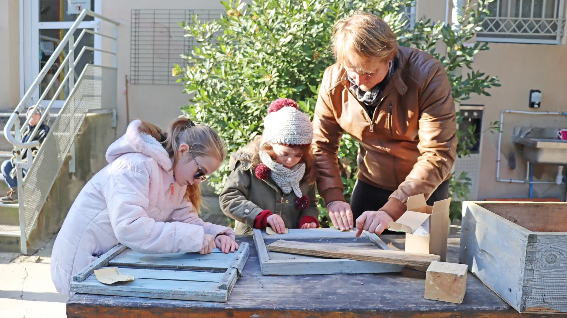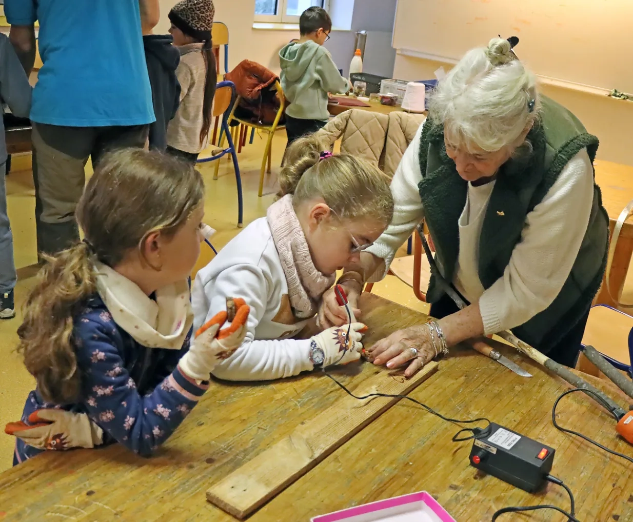 Fabrication d'un médaillon en bois avec l'aide des résidents séniors de l'établissement Nohée